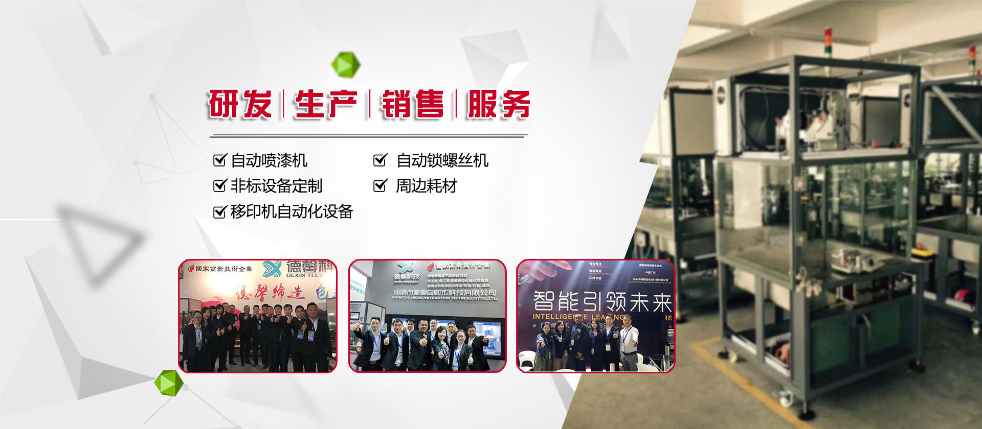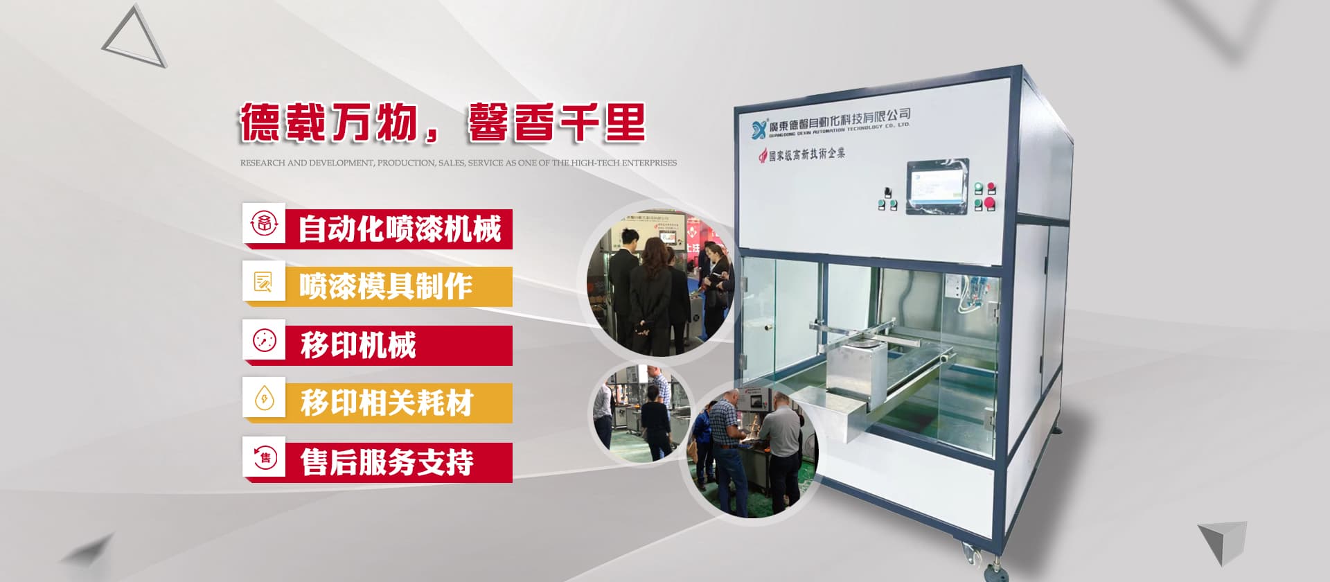 德馨科技創(chuàng)立以來,以改變噴印業(yè)傳統(tǒng)手工生產(chǎn)模式為目標,產(chǎn)品開發(fā)制造堅持以“環(huán)保、智能”為理念,為企業(yè)的生產(chǎn)環(huán)境、人力成本、生產(chǎn)效率等提供更為優(yōu)良的服務和技術(shù)支持。公司研發(fā)產(chǎn)品主要有自動化噴漆機械、噴漆模具制作等;生產(chǎn)銷售移印機械及移印相關(guān)耗材,包括菲林設(shè)計輸出;鋼板制作、移印膠頭制作、定位制作及周邊配件耗材并提供完善的售后服務支持。